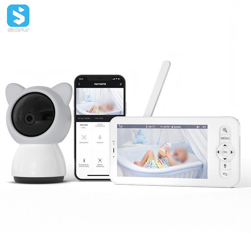 กล้องเฝ้าดูเด็กทารกระบบตรวจจับการเคลื่อนไหวด้วยเสียงอัจฉริยะขนาด5นิ้ว1080P Wi-Fi ตรวจสอบการเคลื่อนไหวพร้อมแอป